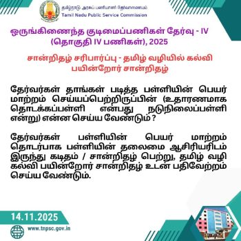 குரூப் 4 பணிக்கு தேர்வானவர்கள் சரியான சான்றிதழை பதிவேற்ற கால அவகாசம்: டிஎன்பிஎஸ்சி அறிவிப்பு - Dinakaran